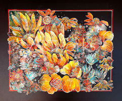 My limited vision challenges my creativity, encouraging me to experiment with all sorts of mixed media. When not teaching or playing with my watercolours, I enjoy developing collage and mosaic artworks using acrylics, ink and homemade paints, often with my fingers because its less stressful than trying to figure out where I put my brush! If you see something you like, let me know. I would be happy to share some more info about how and when it was created and what inspired me.